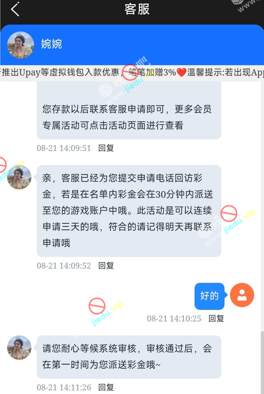联系客服说领取回访彩金,以前充值过这样说,我也是这样去碰的,你们自己去试试吧。