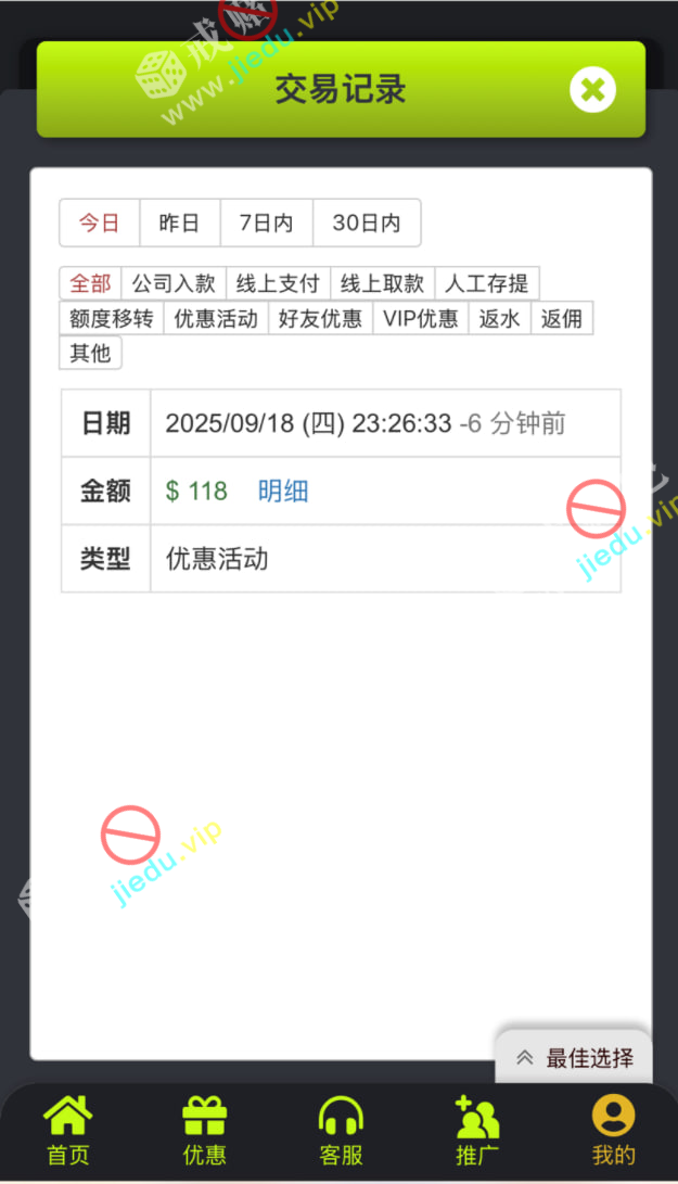 回访彩金 118,已经领到 2 次了,可以去碰碰,稳!