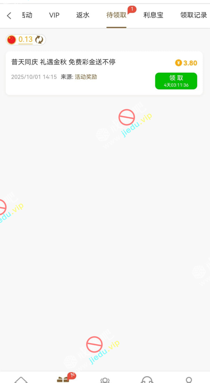 登录上去在待领取那里领取,没有存款别去!