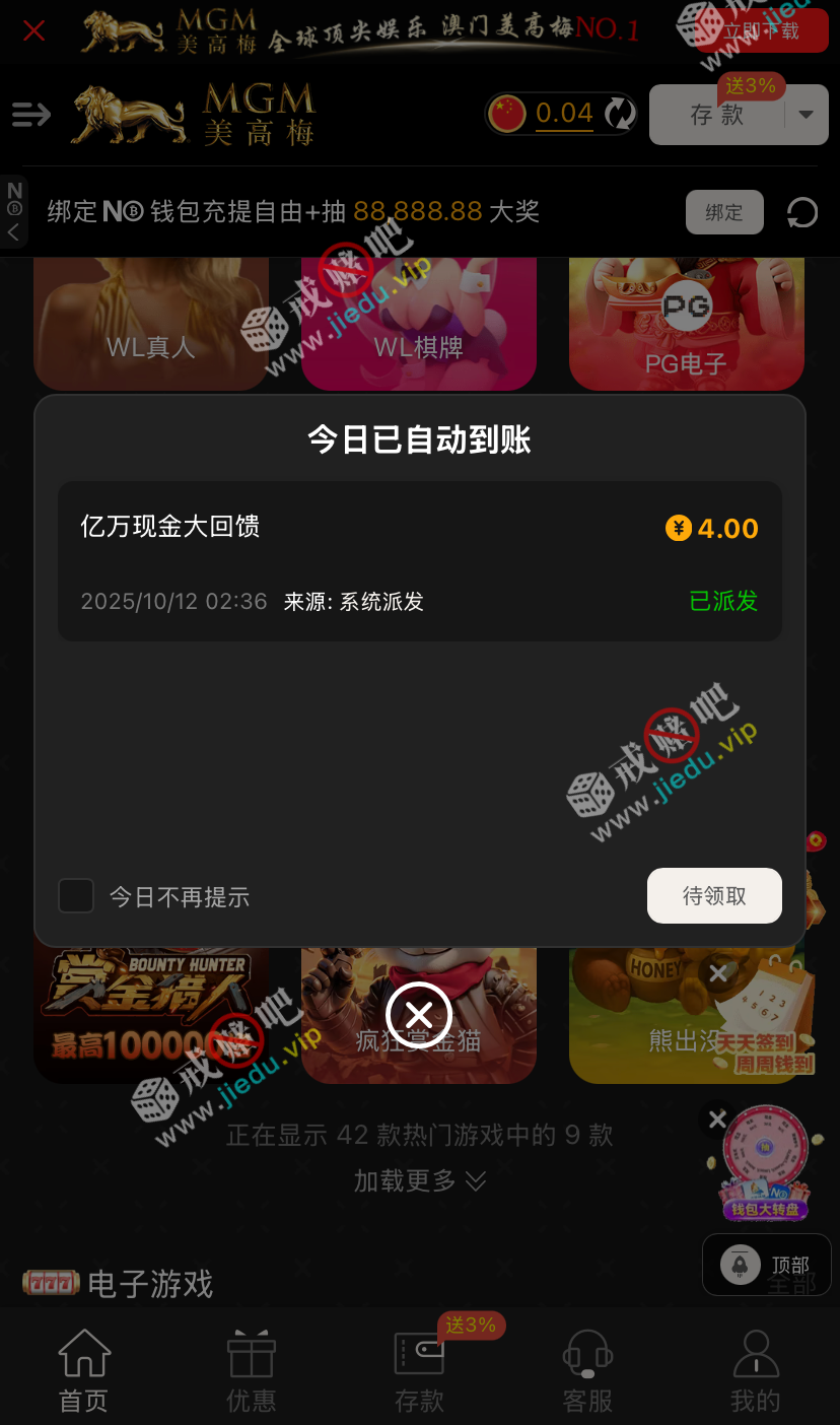到账情况: 白嫖即可(勿充值)