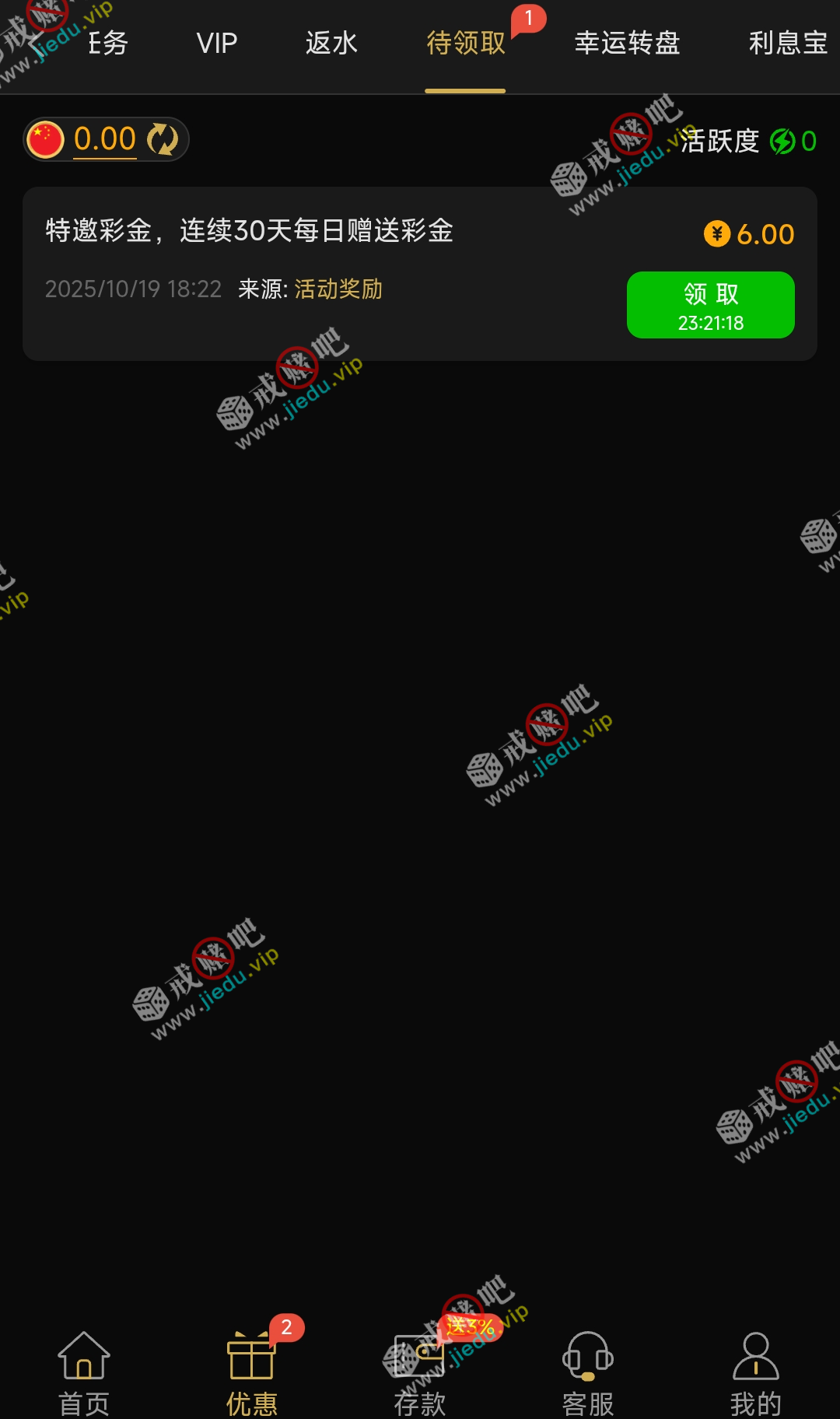 当天注册第二天下午7点领取,赌狗有的是时间等就完了。