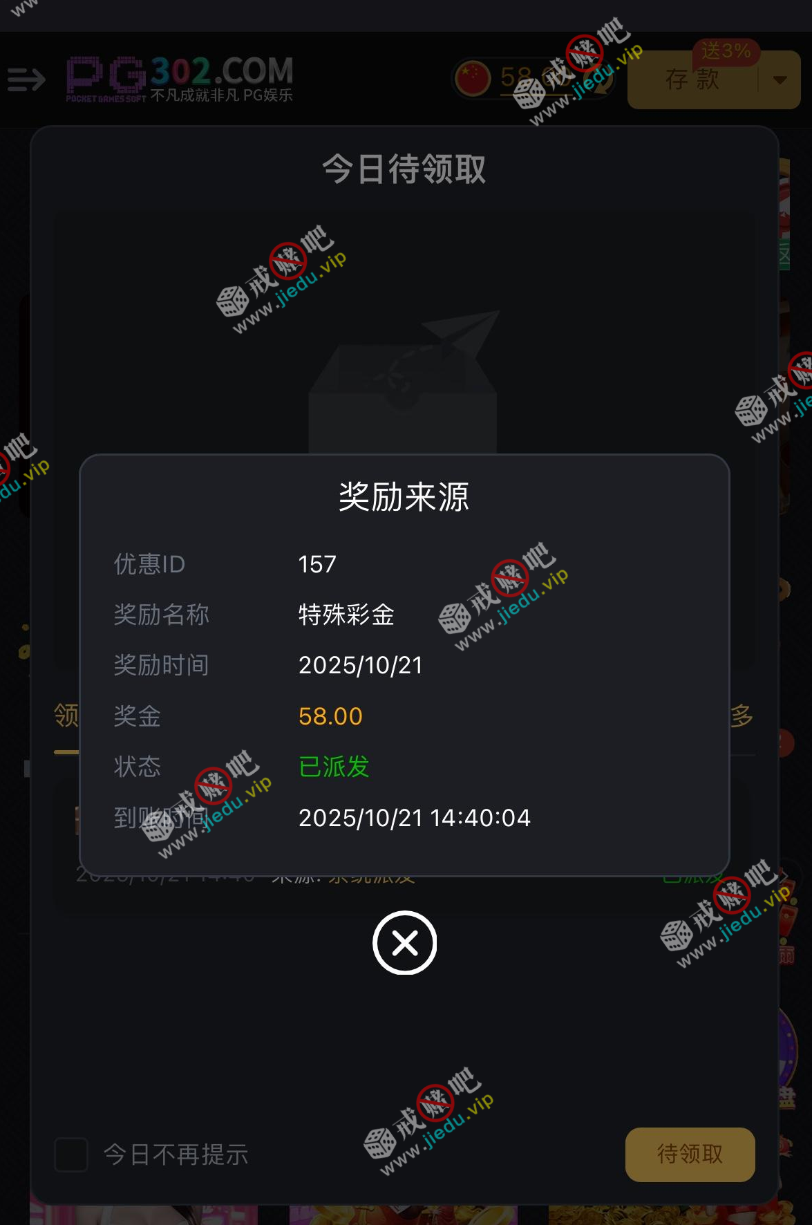 送58,新用户特邀链接注册,用微信小号自制特邀,注册好联系彩金专员碰瓷申请,半黑台不要充值。