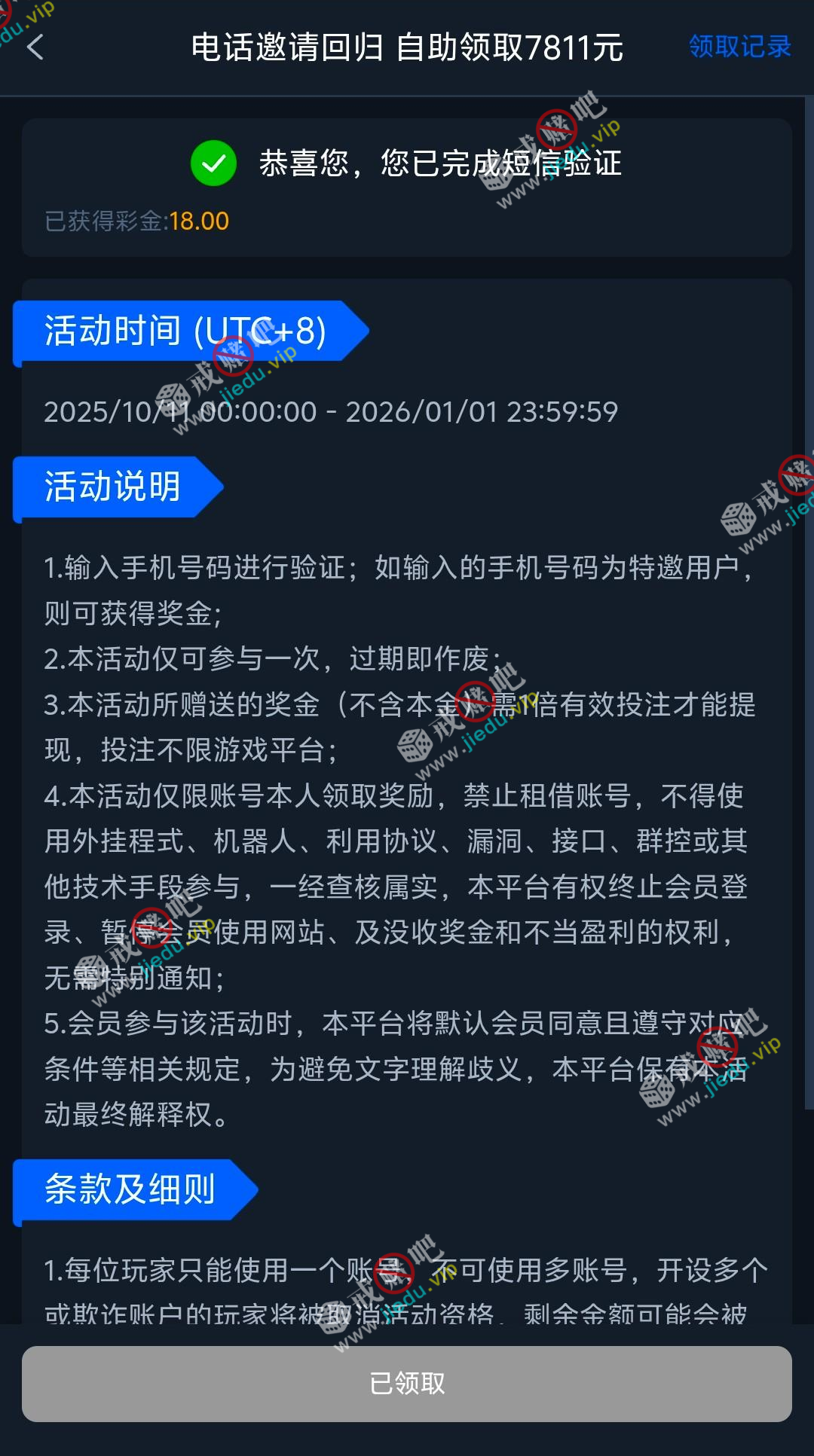 到账情况: 白嫖即可(勿充值)