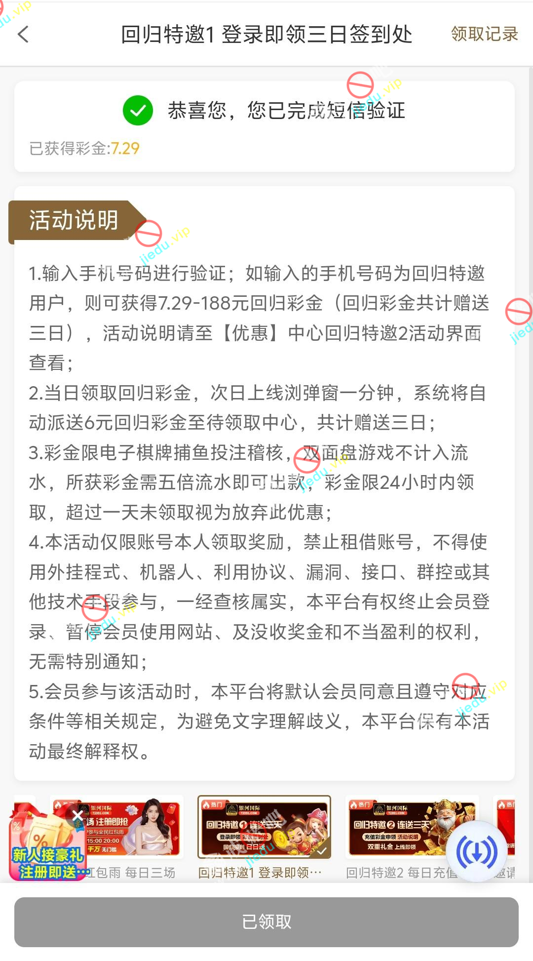 到账情况: 白嫖即可(勿充值)