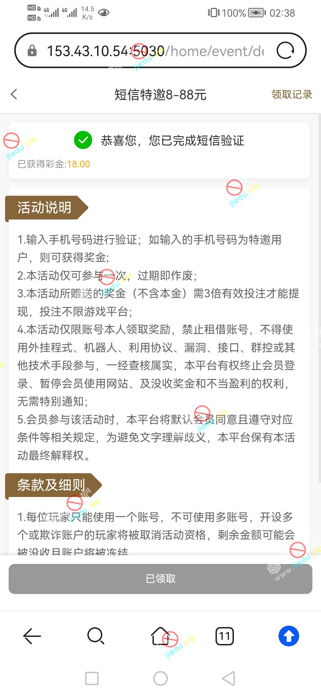 到账情况: 白嫖即可(勿充值)
