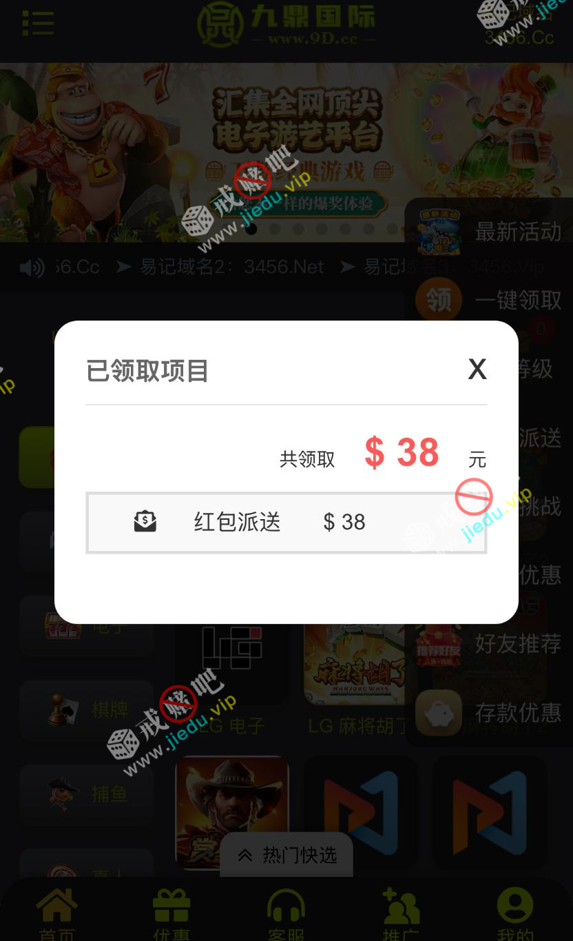回访彩金送 38。