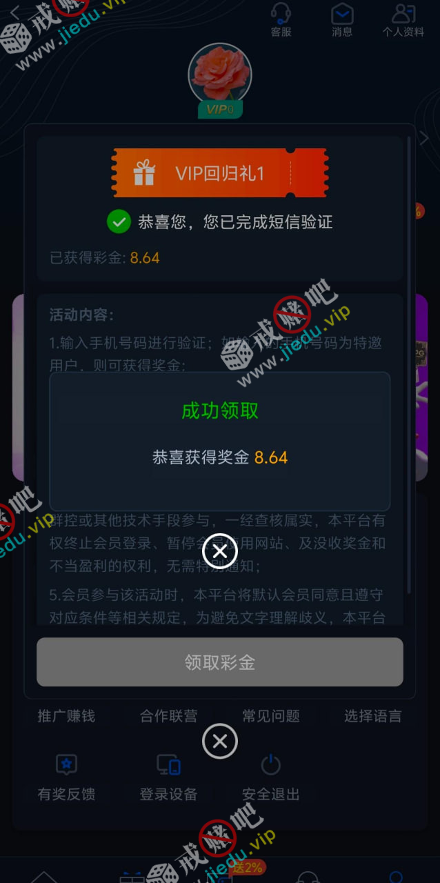 到账情况: 白嫖即可(勿充值)
