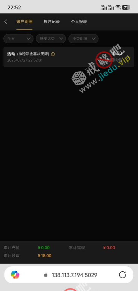 到账情况: 白嫖即可(勿充值)