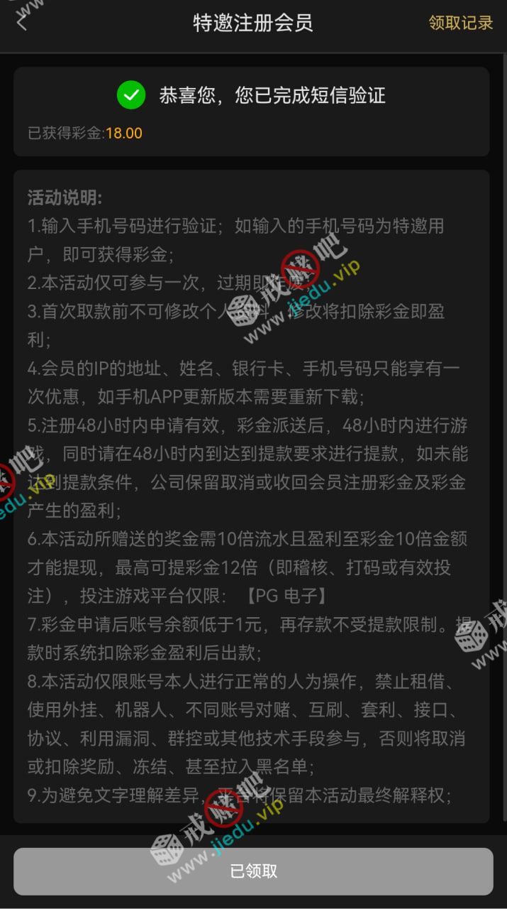 到账情况: 白嫖即可(勿充值)
