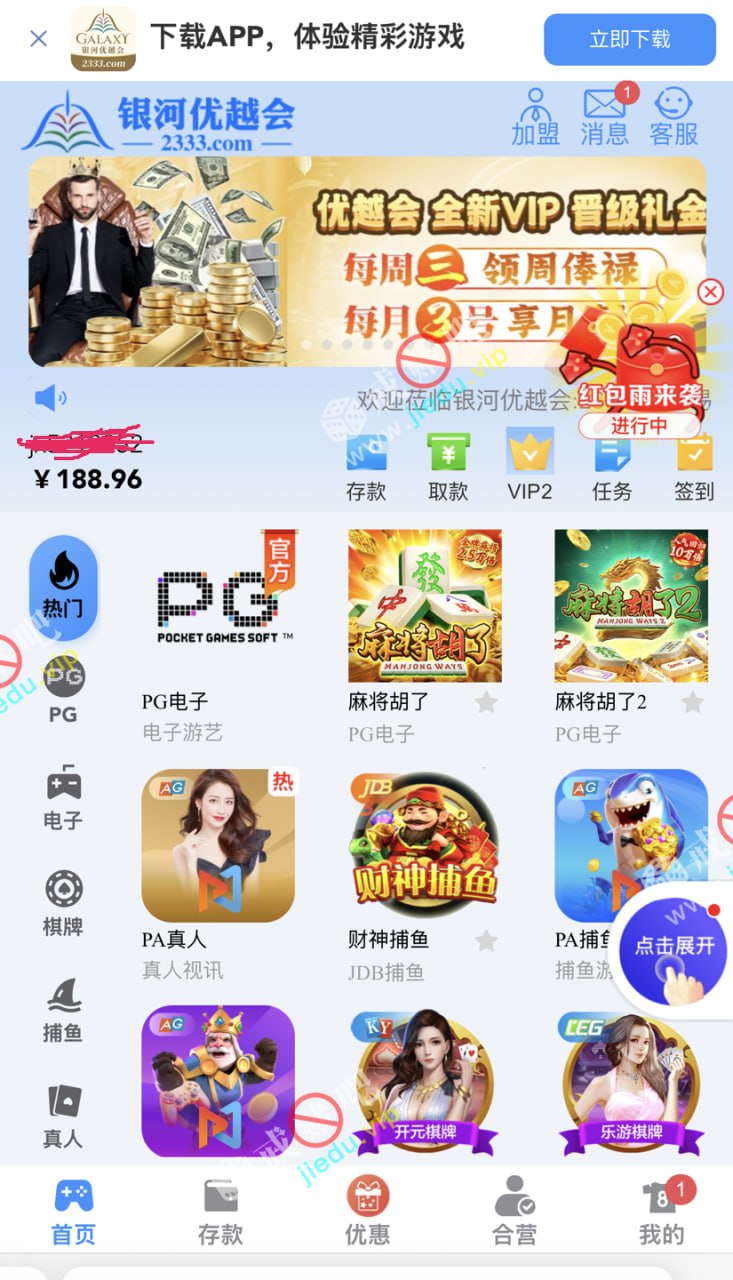 我注册才有几天 ,还没充值过,今天上号就让我惊喜的 ,看见了号上有 188,像我的哥们和老用户赌神都可以去看看。