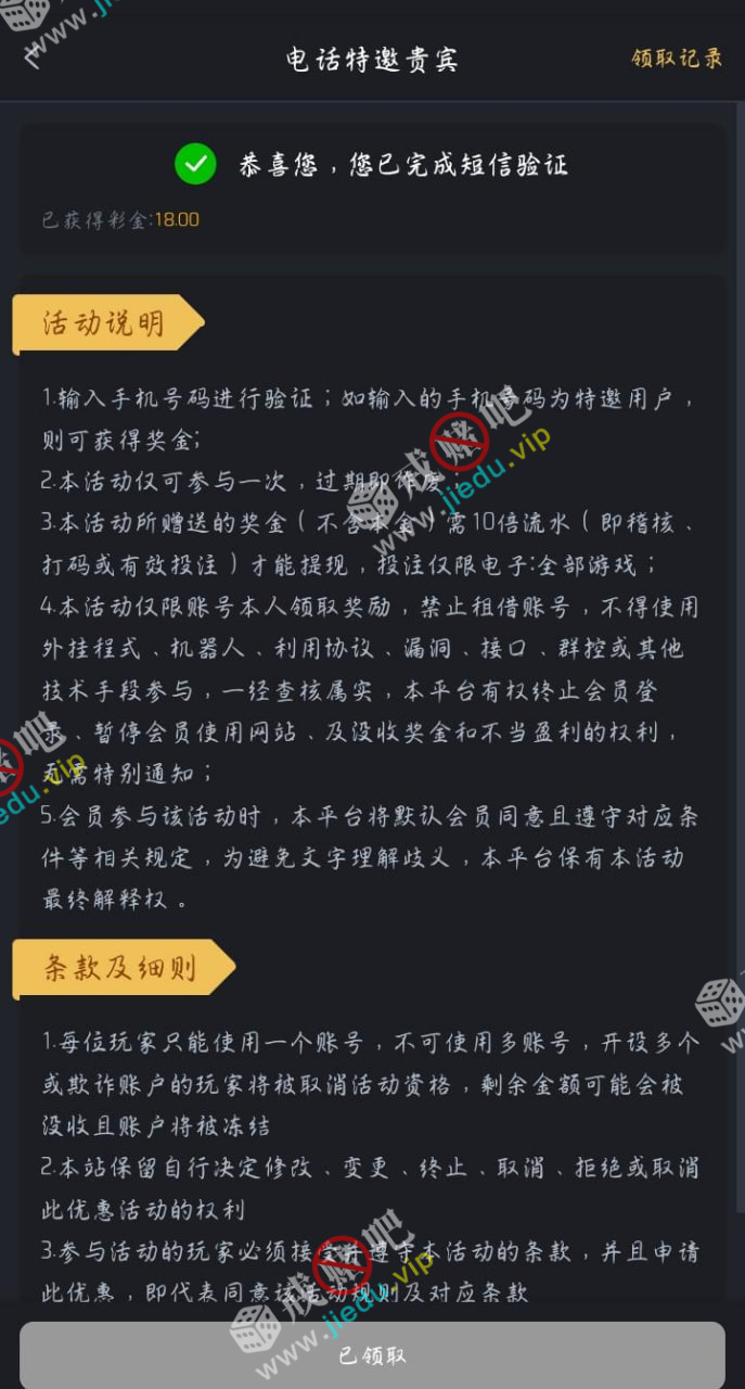 以前不是特邀的,现在去看一下,刚打电话给我送了 18 彩金,10倍流水,电子全部能玩,不能玩其他的!