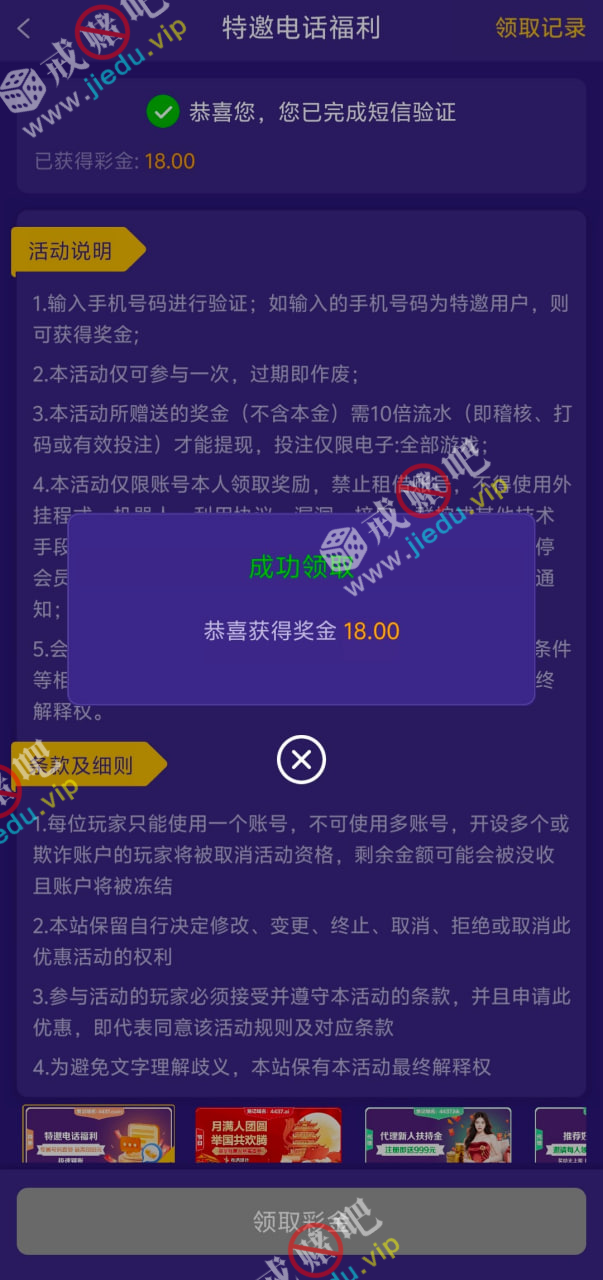 各位兄弟,干就完事了,没接到电话和短信就,直接输入手机号验证领取碰瓷即可,能收到验证的手机号就OK了,不必要接到电话,如果没碰到就不是特邀了。