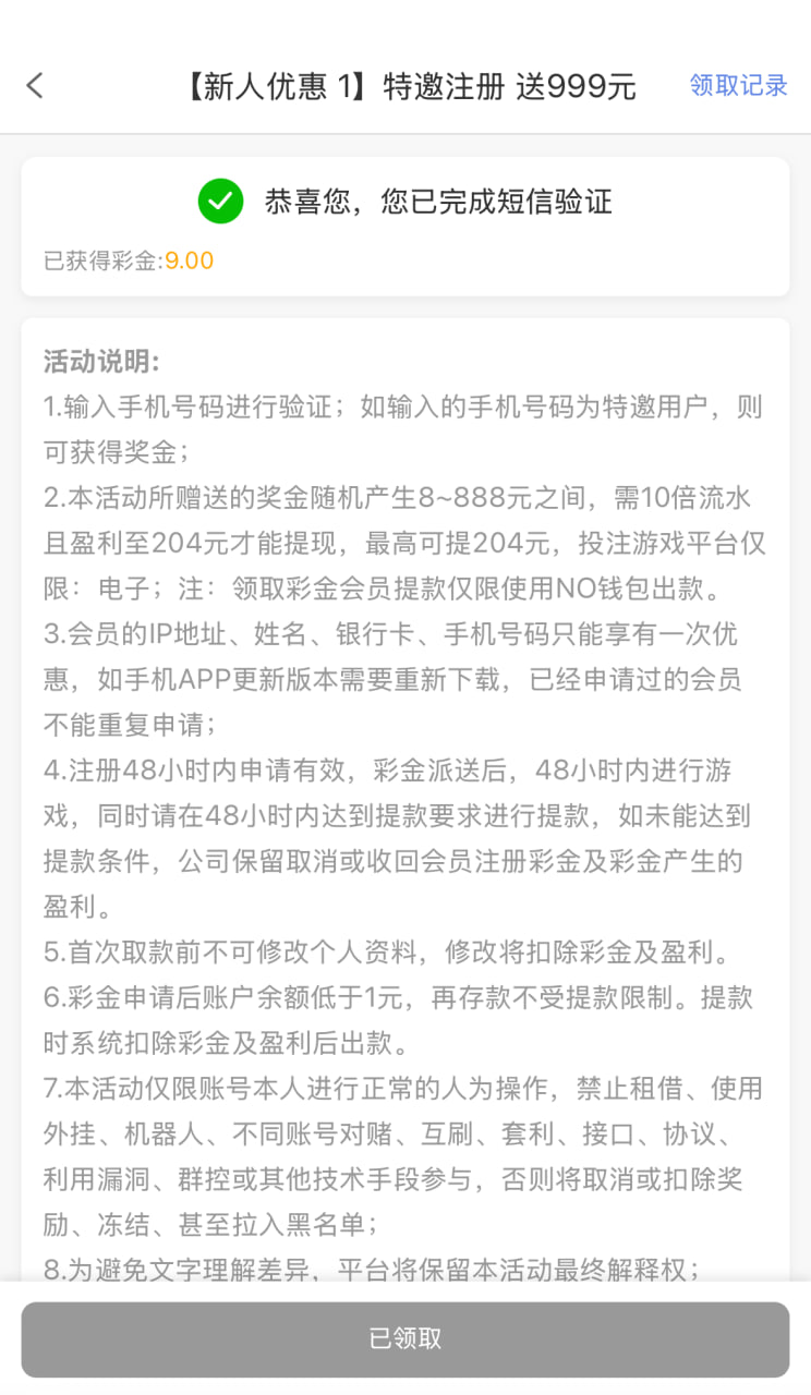 到账情况: 白嫖即可(勿充值)