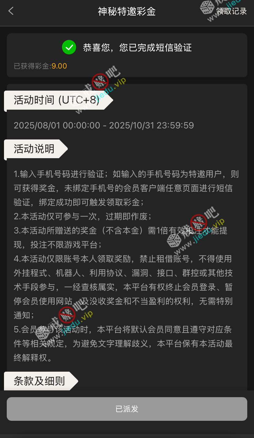到账情况: 白嫖即可(勿充值)