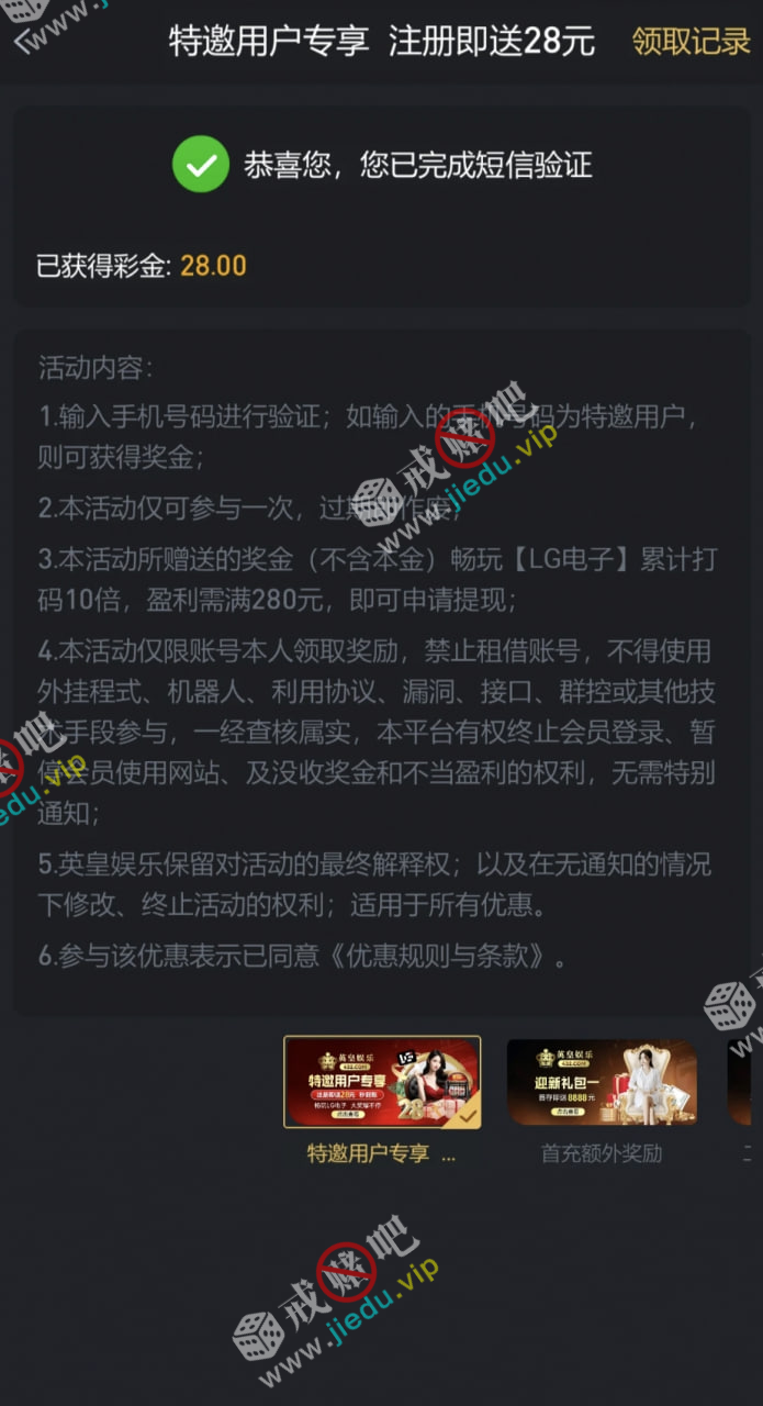 【英皇432】—✅—短信特邀彩金28