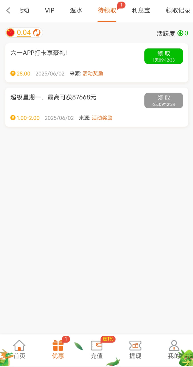 到账情况: 白嫖即可(勿充值)